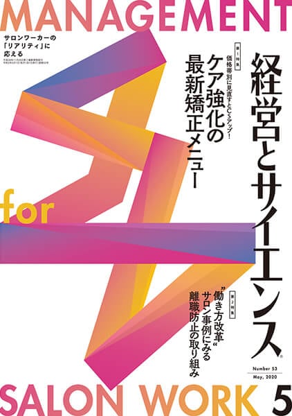 パートや正社員などの雇用形態、社会保険の加入、トレーニングのあり方など、サロンを取り巻く環境が大きく変化しています。特集では、スタッフが長く、快適に働ける環境づくりに挑戦しているサロンを取材。スタッフ目線のサロン経営を検証。また、「経営とサイエンス編集部」内で、座談会を実施。今、サロン現場で起きている課題を浮き彫りにしてきます。